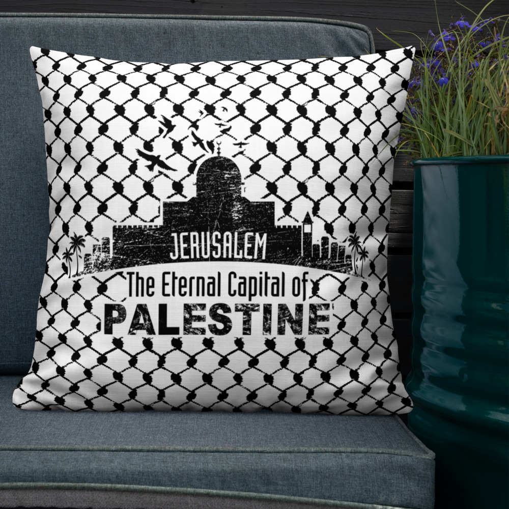 An accent like this Jerusalem the Eternal Capital of Palestine Decorative Pillow placed at home or office can definitely raise awareness of the ongoing injustice perpetrated by the occupation state of Israel against the Palestinian people since 1948.