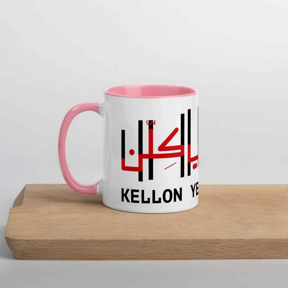 Add a splash of color to your morning coffee or tea ritual! These ceramic mugs not only have a powerful Lebanon solidarity quote kellon ya3ni kellon on them, but also a colorful rim, handle and inside, so the mug is bound to spice up your mug rack.