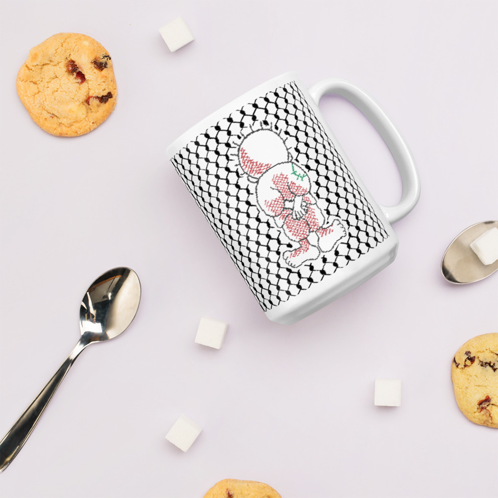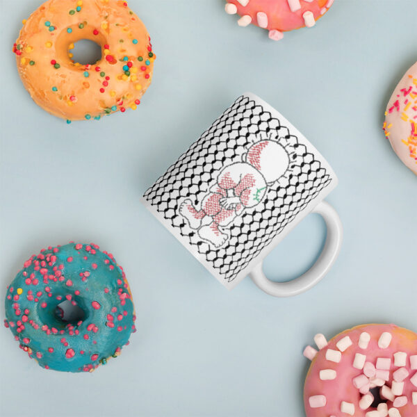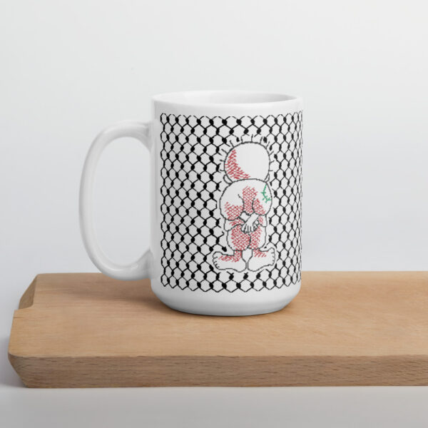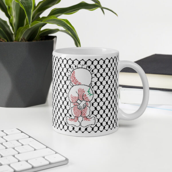 Whether you’re drinking your morning coffee, evening tea, or something in between, this beautifully customized Palestine Handala Kufiya gift mug is for you! It’s sturdy and glossy with a vivid print that’ll withstand the microwave and dishwasher.