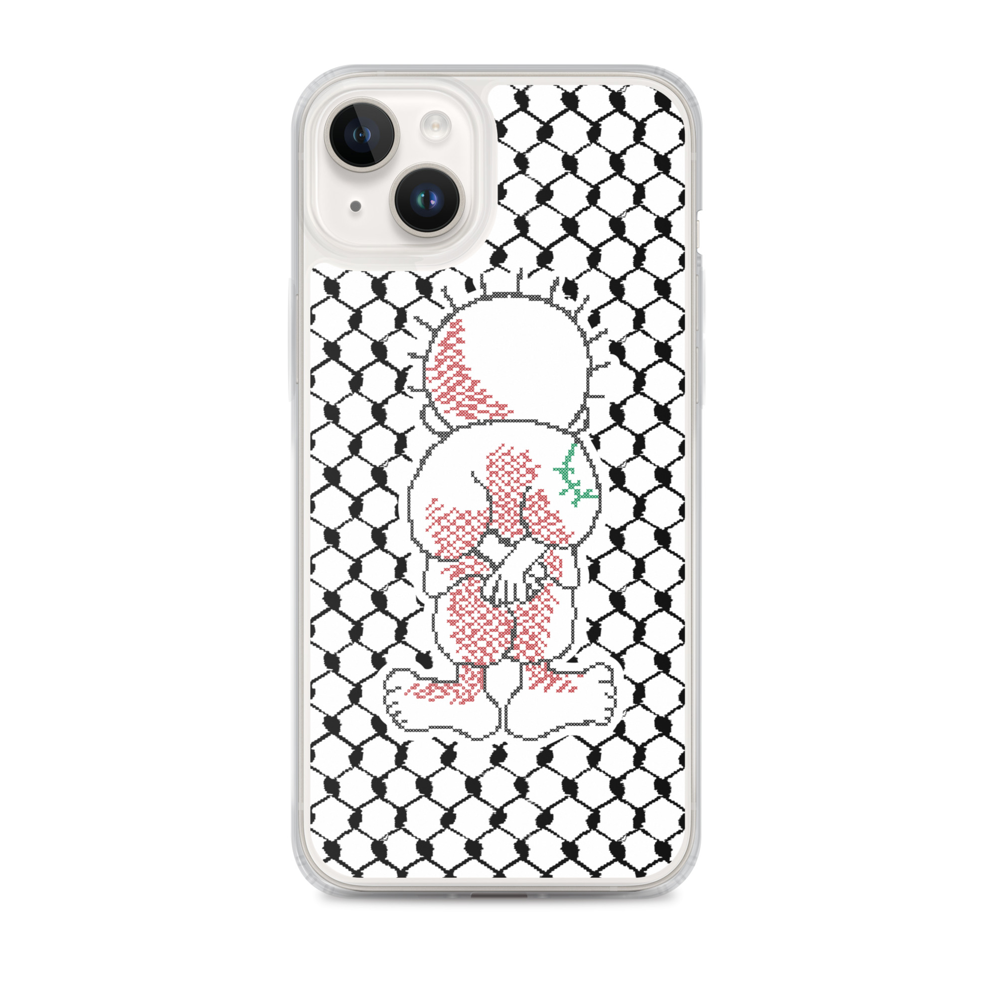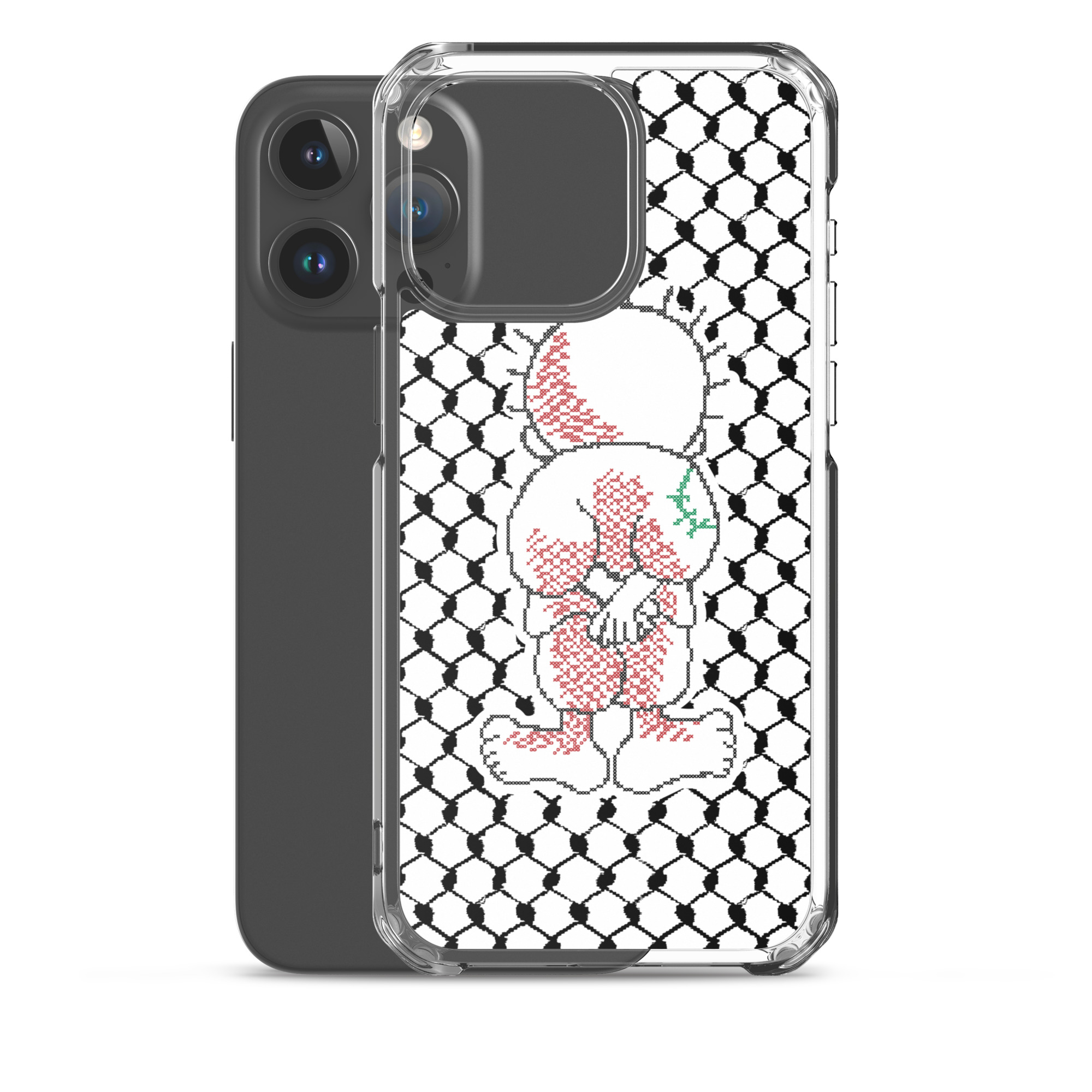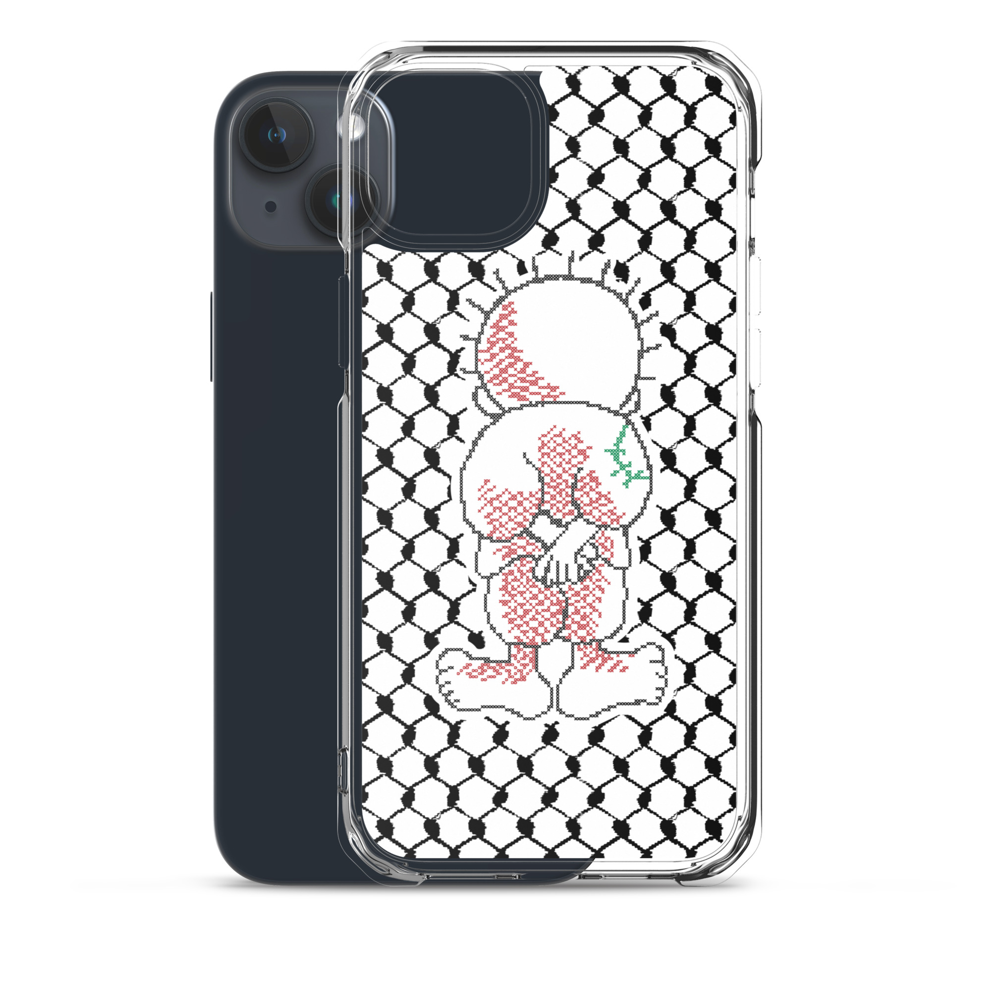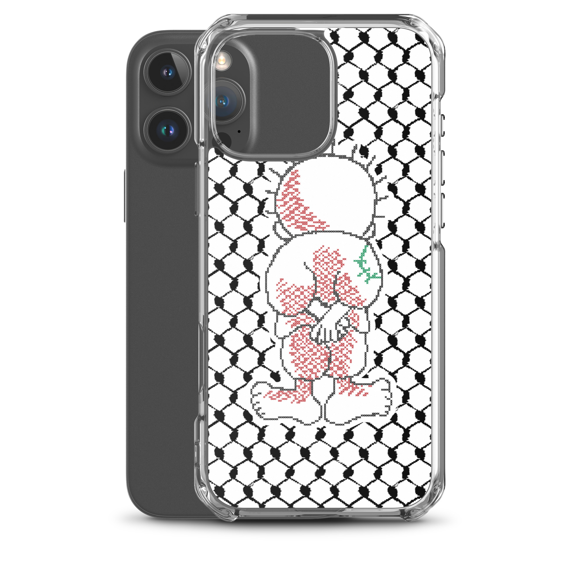 This sleek customized Palestinian Kufiya Handala iPhone case protects your phone from scratches, dust, oil, and dirt. It has a solid back and flexible sides that make it easy to take on and off, with precisely aligned port openings.