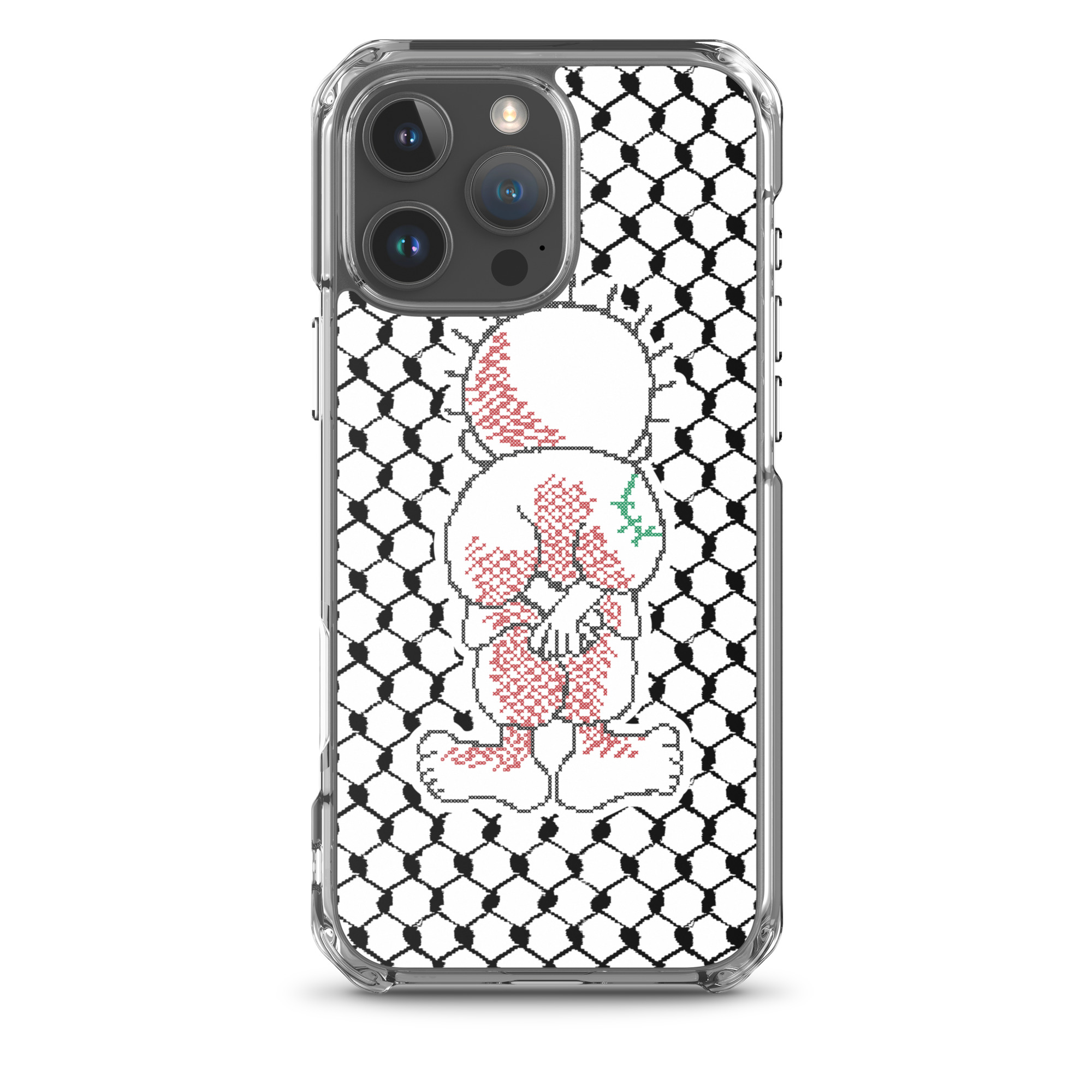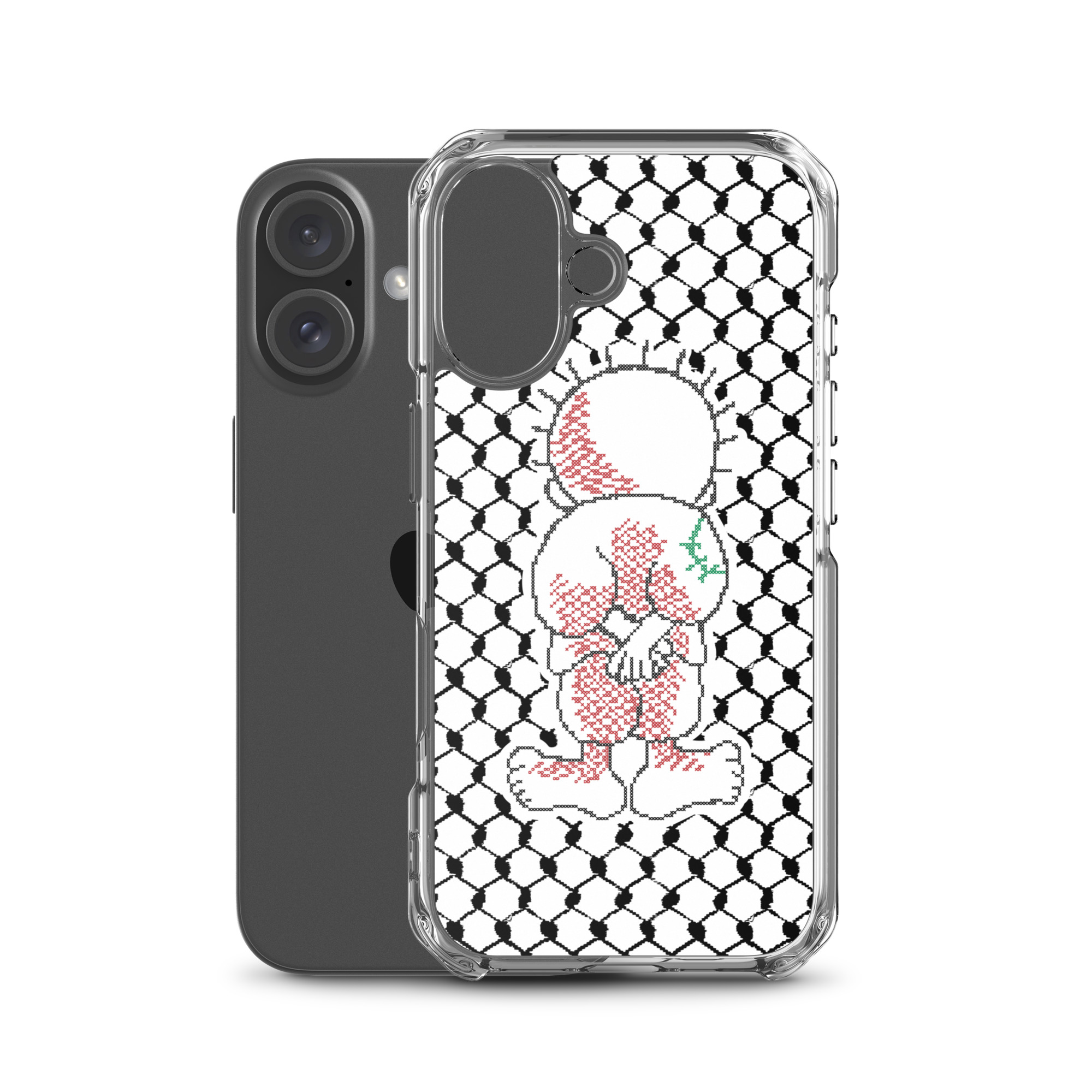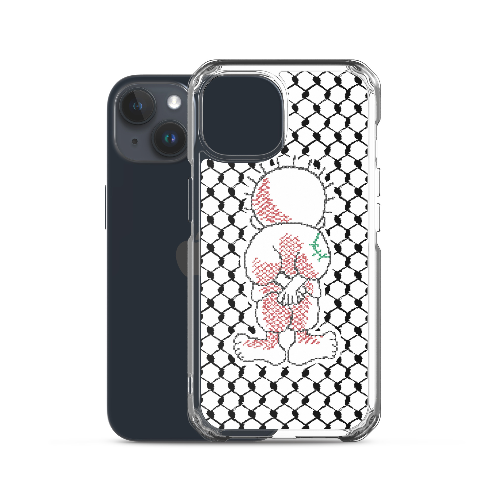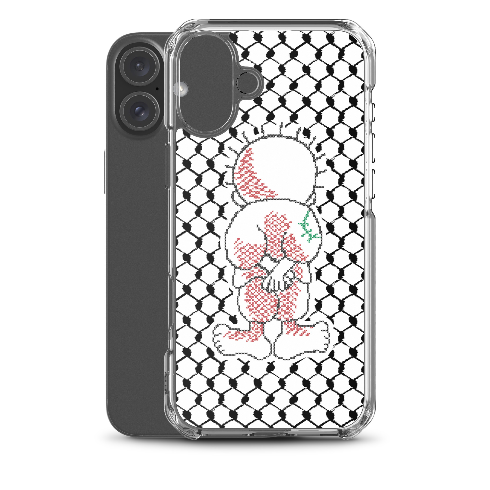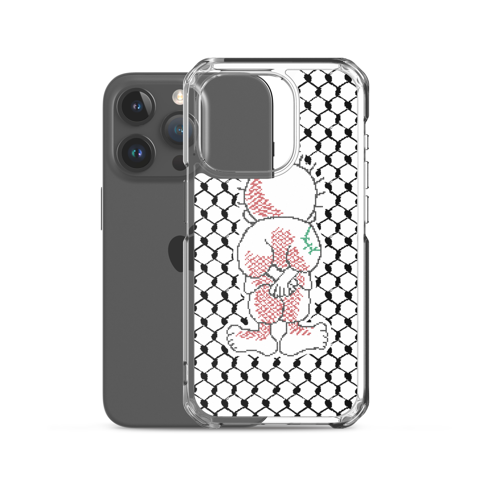 This sleek customized Palestinian Kufiya Handala iPhone case protects your phone from scratches, dust, oil, and dirt. It has a solid back and flexible sides that make it easy to take on and off, with precisely aligned port openings.