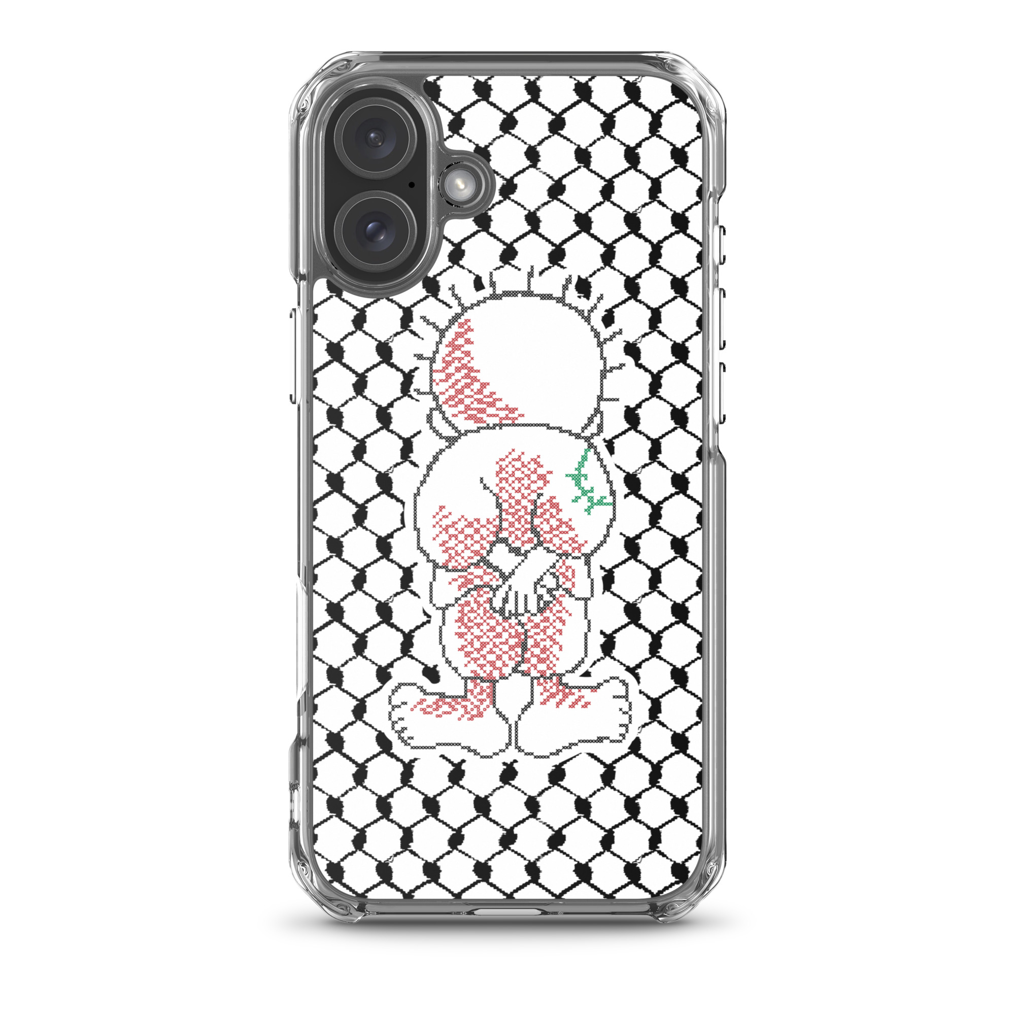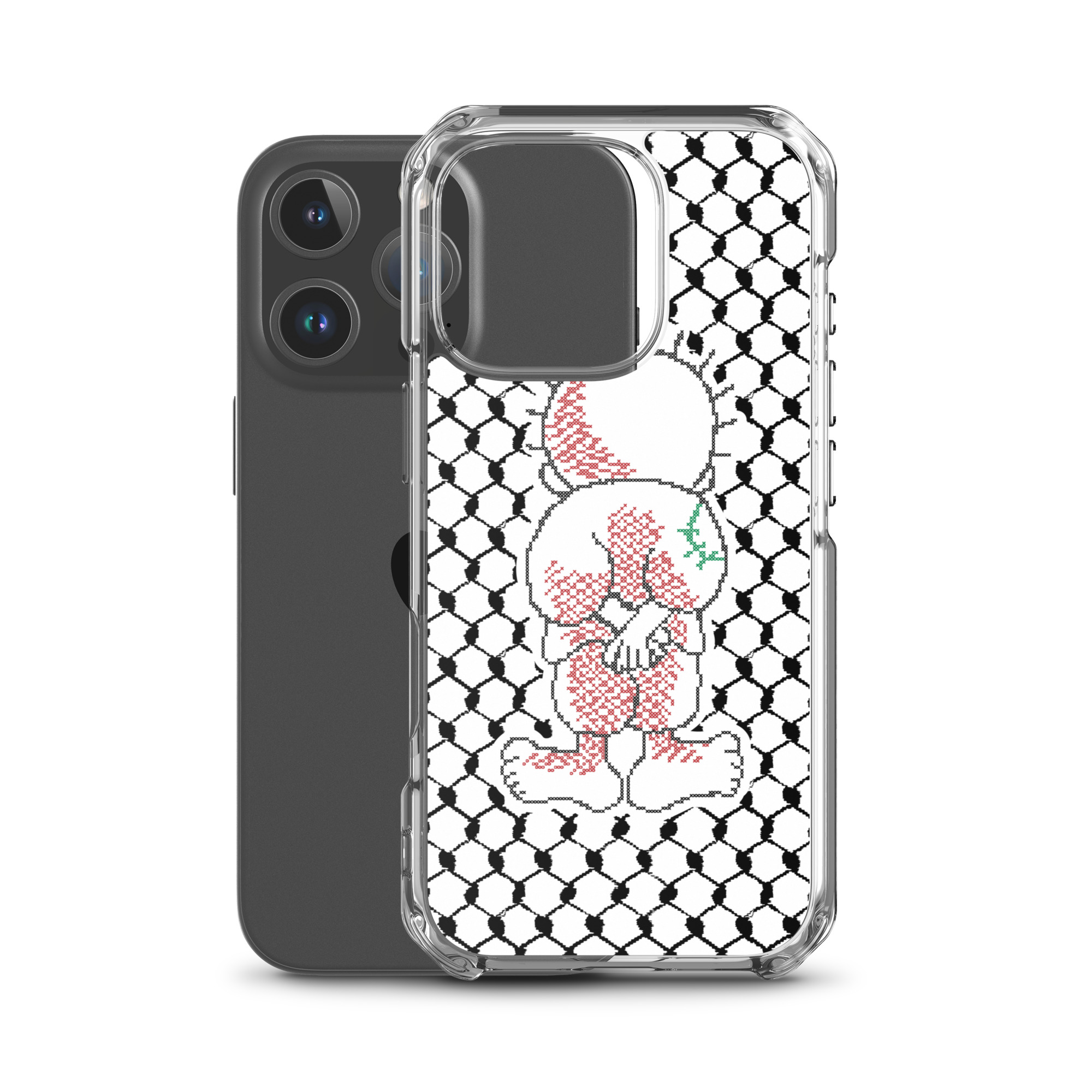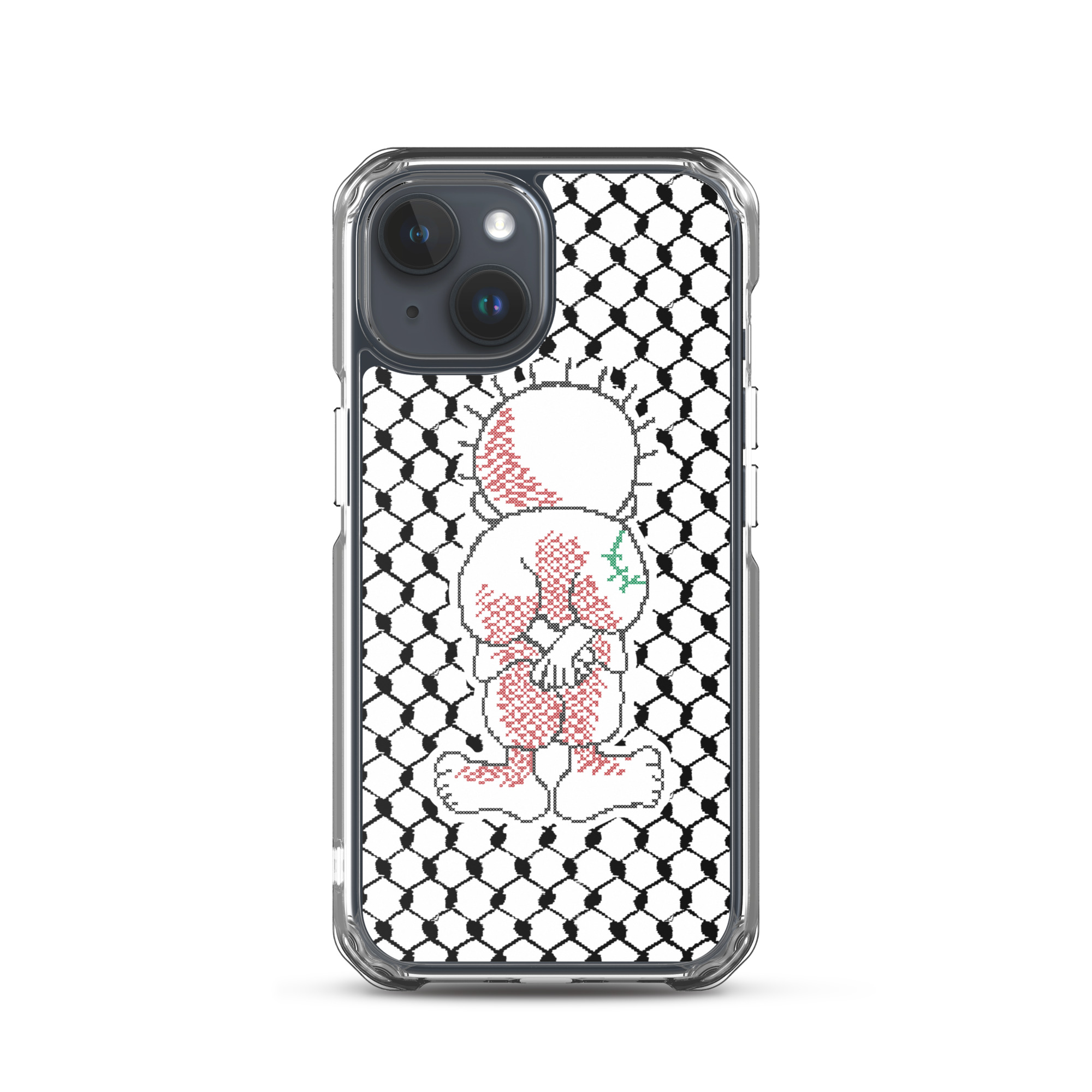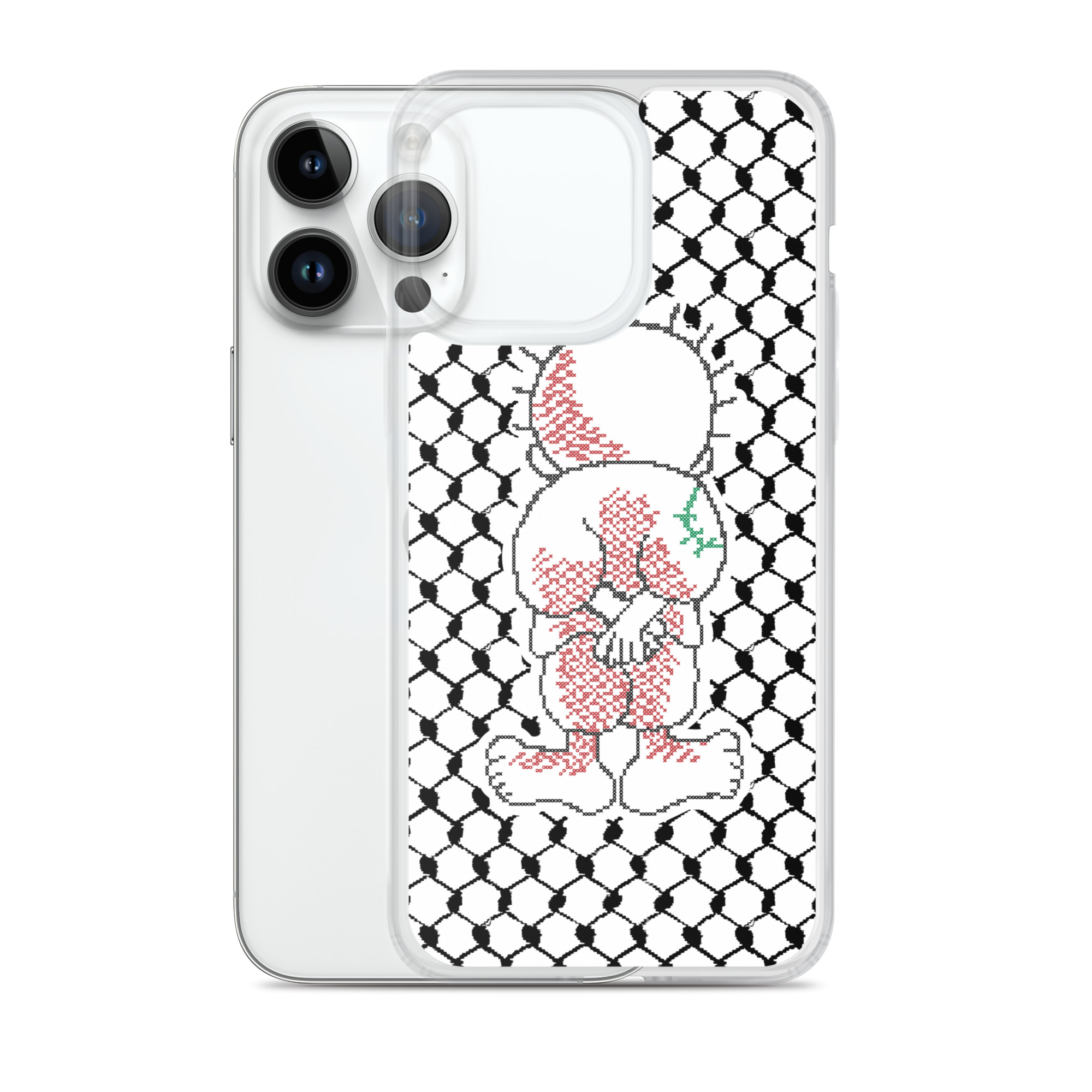 This sleek customized Palestinian Kufiya Handala iPhone case protects your phone from scratches, dust, oil, and dirt. It has a solid back and flexible sides that make it easy to take on and off, with precisely aligned port openings.