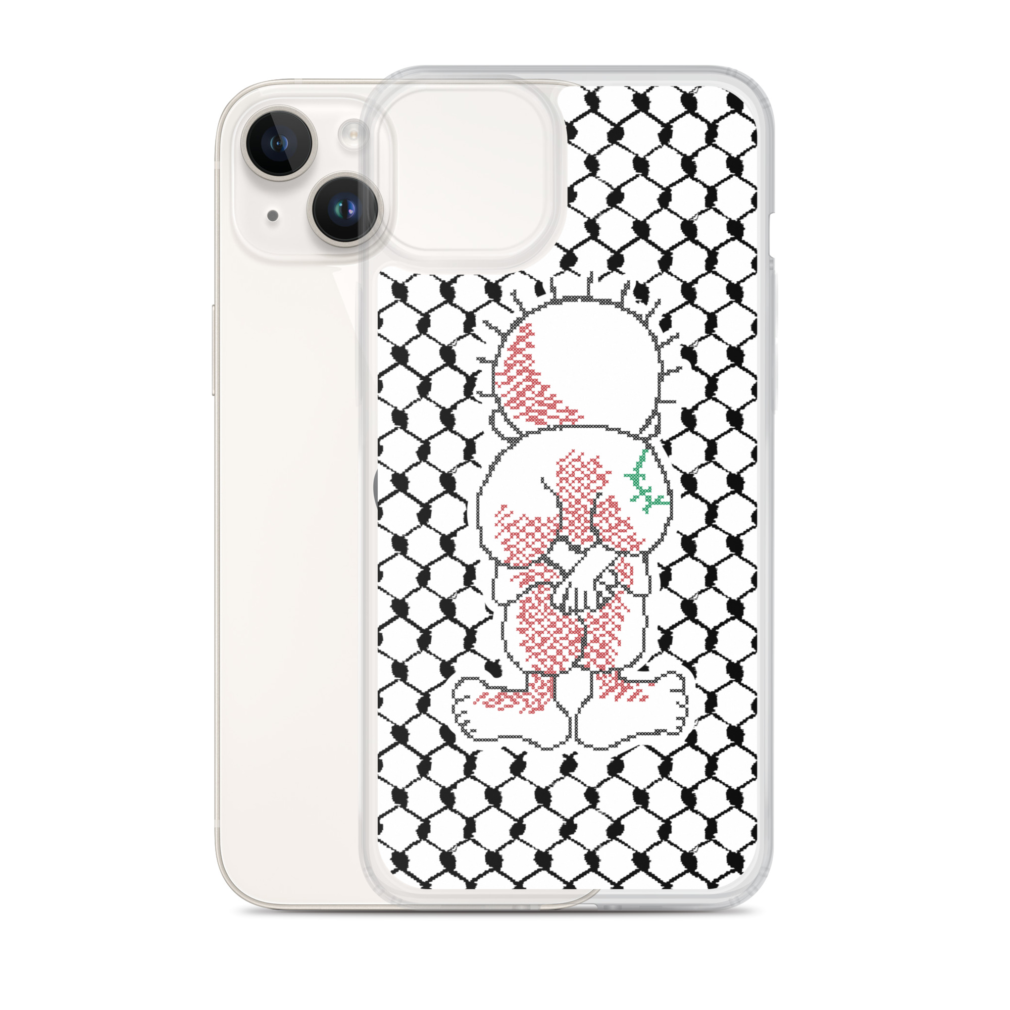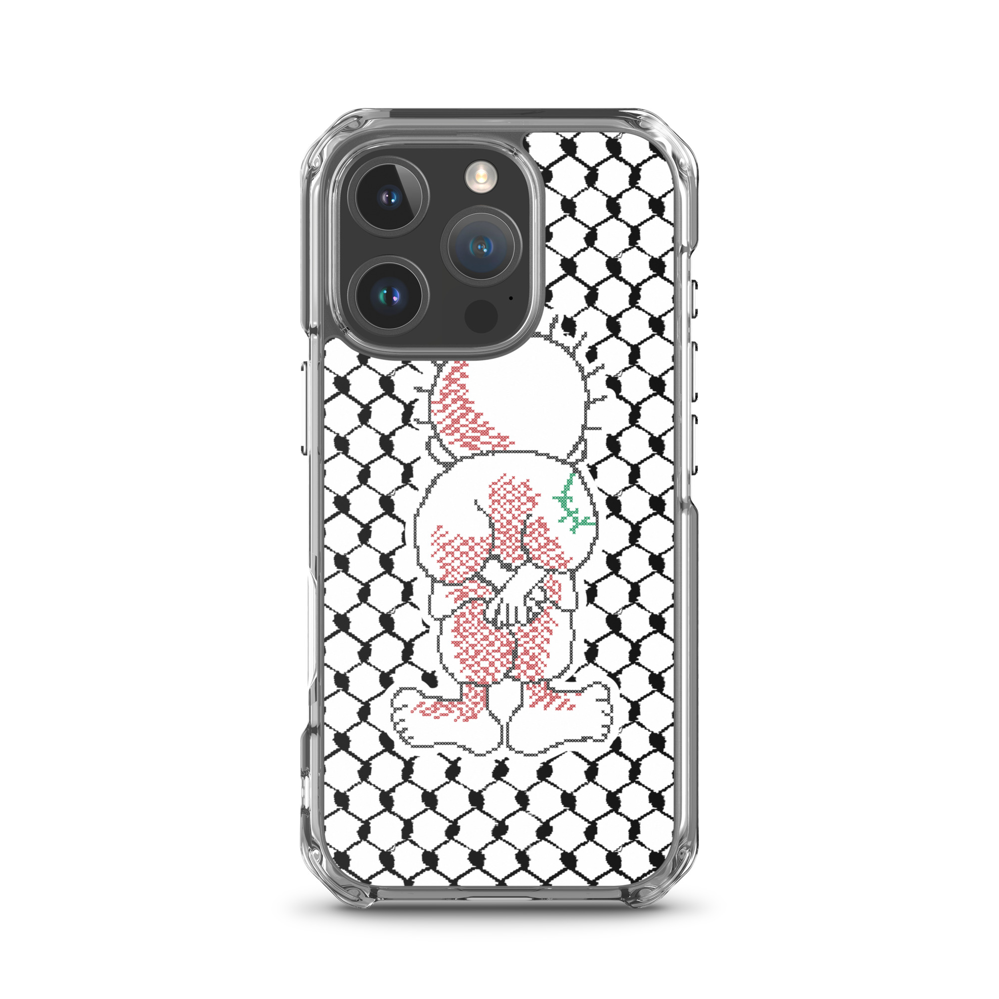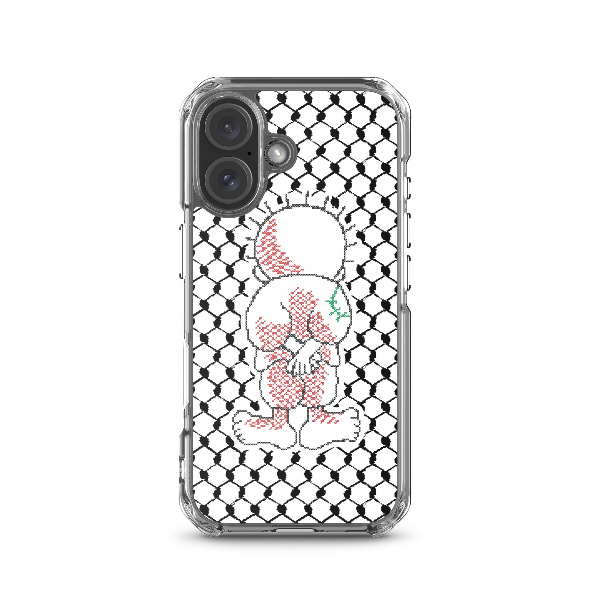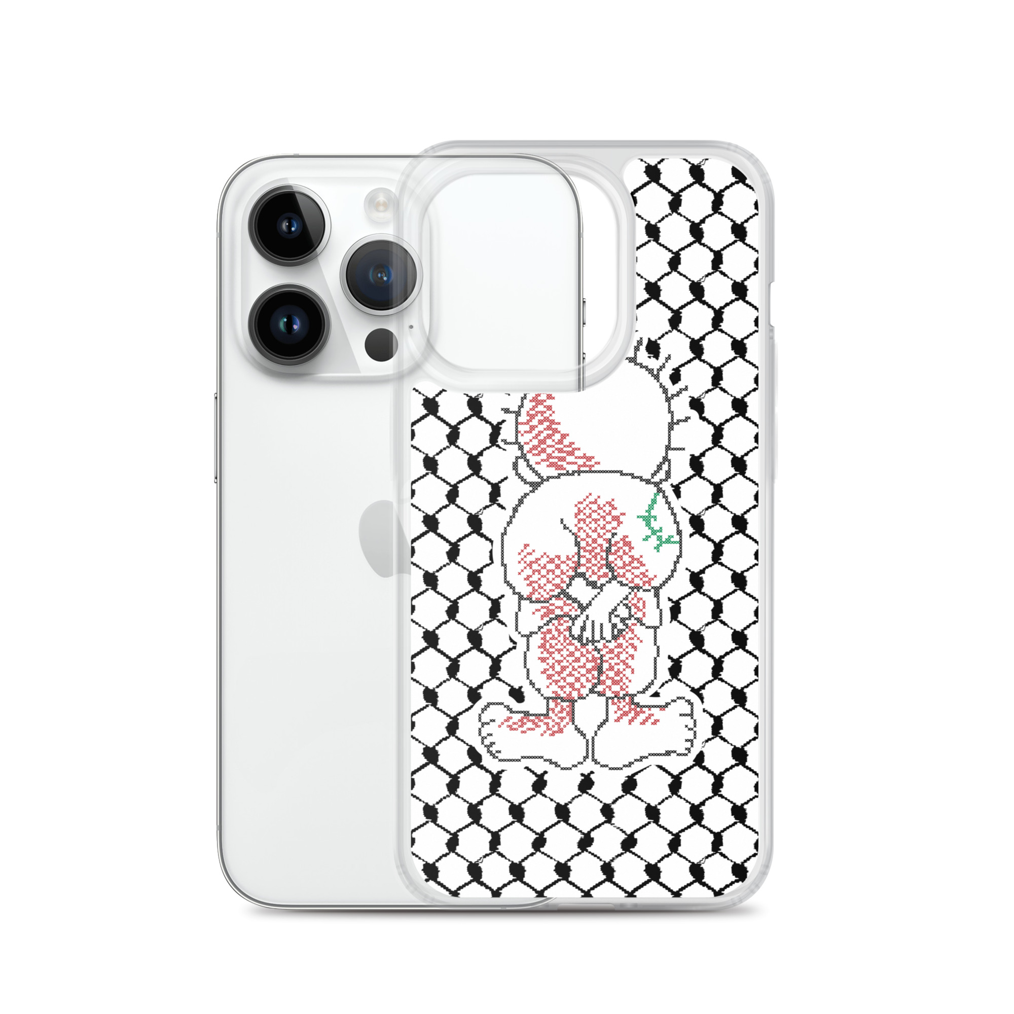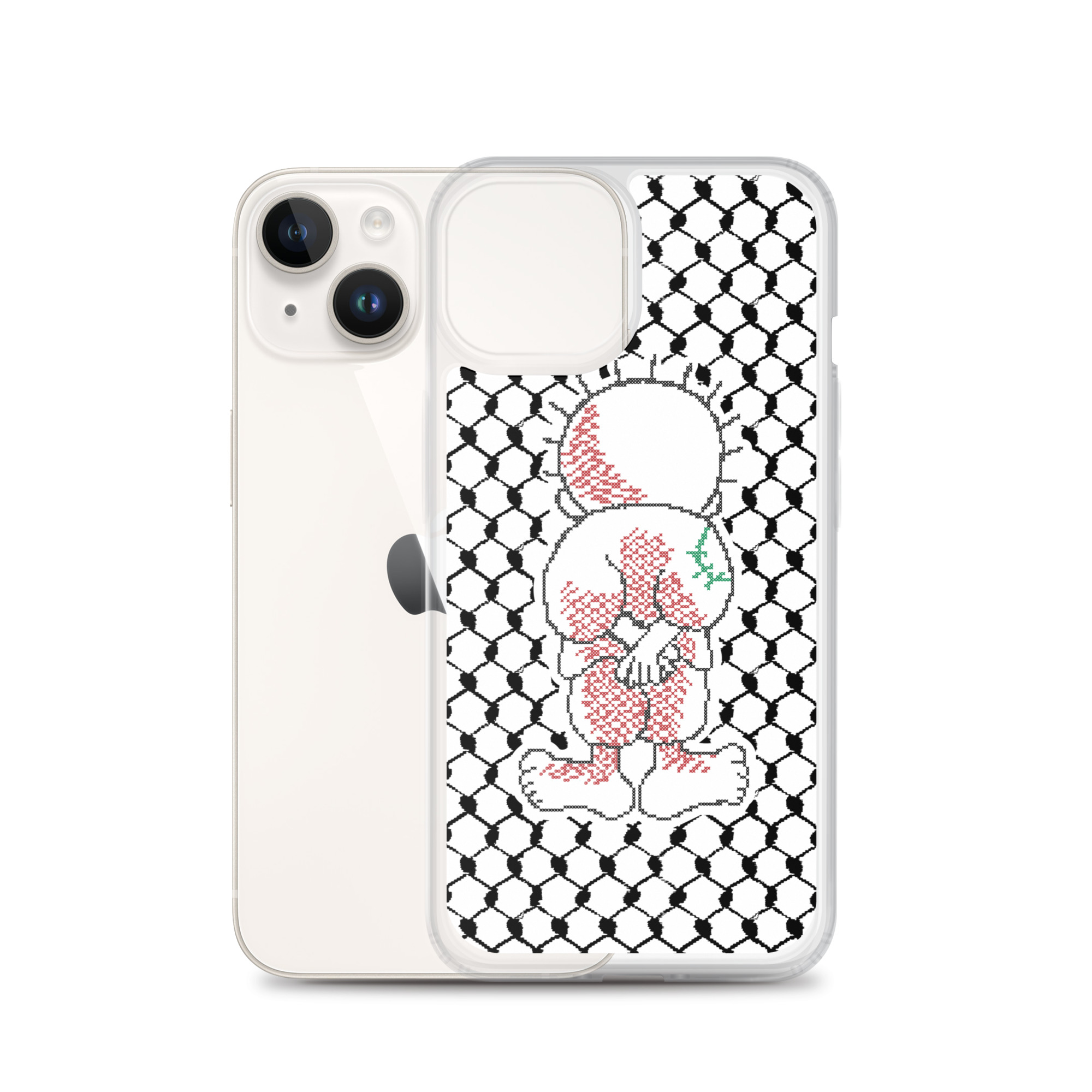 This sleek customized Palestinian Kufiya Handala iPhone case protects your phone from scratches, dust, oil, and dirt. It has a solid back and flexible sides that make it easy to take on and off, with precisely aligned port openings.