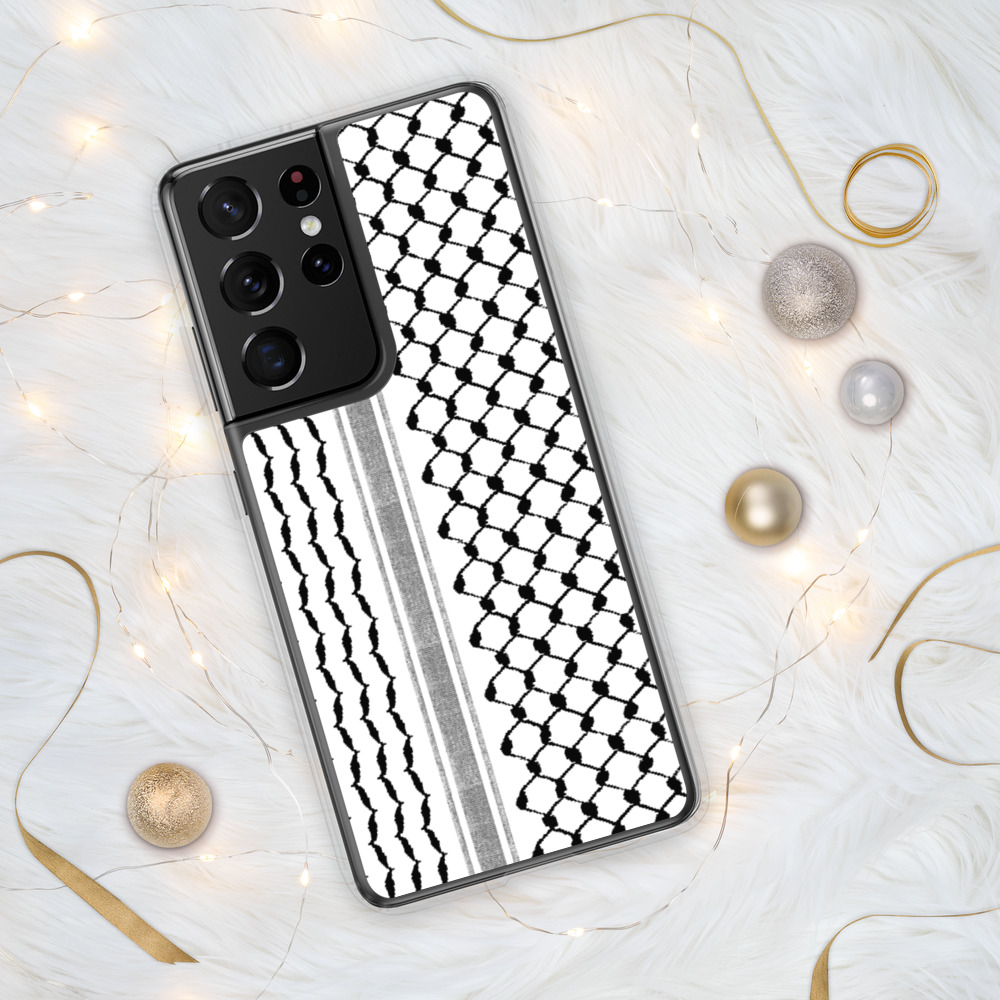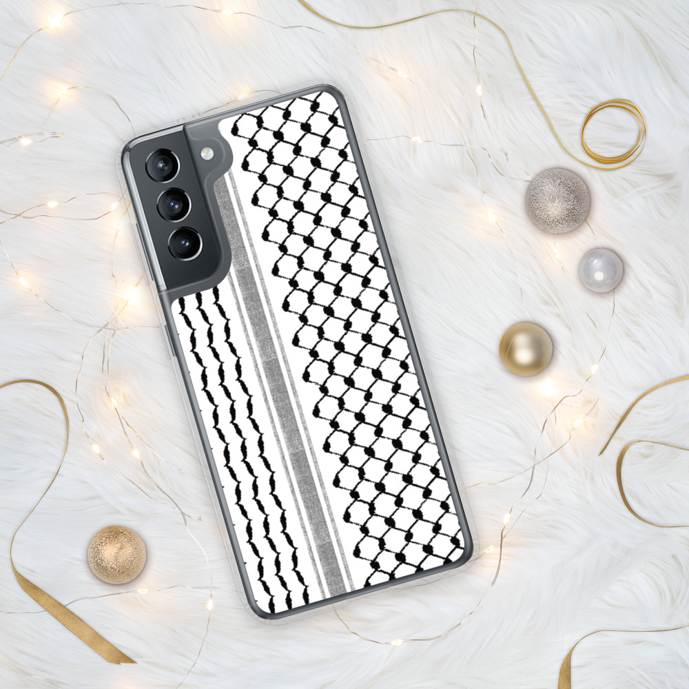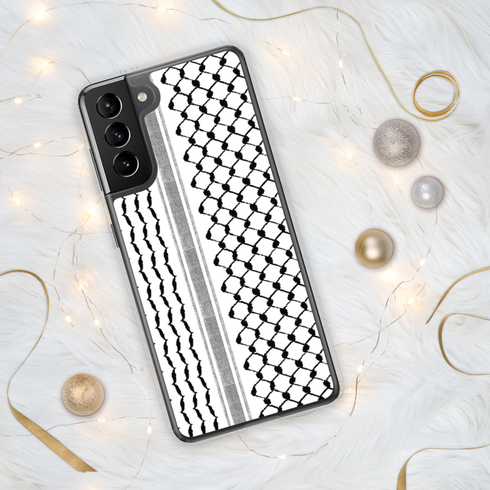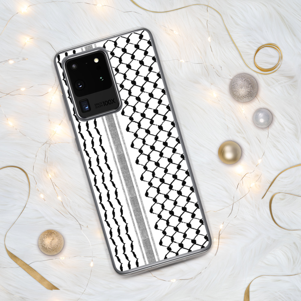 This sleek customized with Palestinian traditional Kufiya Samsung phone case protects your phone from scratches, dust, oil, and dirt. It has a solid back and flexible sides that make it easy to take on and off, with precisely aligned cuts and holes.