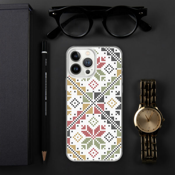 This sleek Palestinian Tatreez embroidery pattern iPhone case protects your phone from scratches, dust, oil, and dirt. It has a solid back and flexible sides that make it easy to take on and off, with precisely aligned port openings.